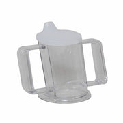 The HandyCup with Lid features an angled spout so that you can drink without tipping your head back to drain the glass. You can tip the Handycup beyond the point where a normal cup would hit the bridge of your nose. The Handycup is transparent so that the level of the contents is always visible, but comes in 4 colour options. The cup has large handles so that you can fit your hand inside for better grip. The handycup features a large base helps to prevent tipping or spilling. The Handycup is designed for those with a poor grip, limited neck movement, those that are bed-bound, or a person using a wheelchair. The Handycup is household dishwasher and microwave safe. It holds 200ml.