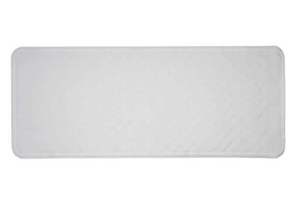 These Rubbergrip Bath Mats have a ribbed surface and suction cups for added slip resistance. The mats are self draining and fully machine washable. The mats are available in white only and in three sizes.