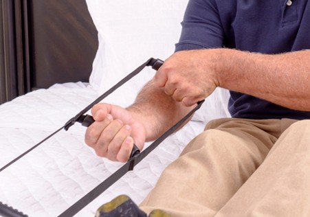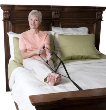 The Bed Caddie attaches to most beds to help you pull yourself to a sitting position to aid in getting in and out of bed.