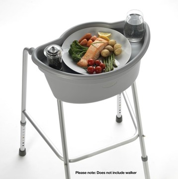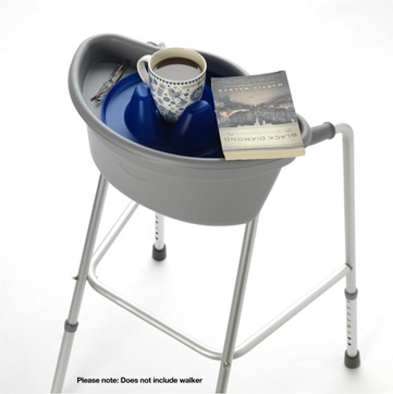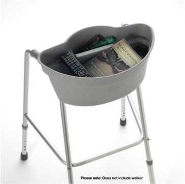 The Buckingham Caddy is a clever accessory for walking frames that attaches to the front to give the user more space for storing items and carrying items from room to room. The Buckingham Caddy is made from tough, durable plastic, which allows the user to safely and securely transport household items. It features a two internal storage sections; one large and one small compartment to keep all your bits and bobs like glasses, mobile phones, or medication organised. THe Buckingham Caddy also includes a tray lid that offers you a stable surface for a dinner plate. A dedicated mug holder is also provided as standard to help prevent spillages when carrying cups. it is easy to fit onto most standard non-folding walking frames. The Buckingham Caddy is dishwasher safe and includes drainage holes for quick drying.